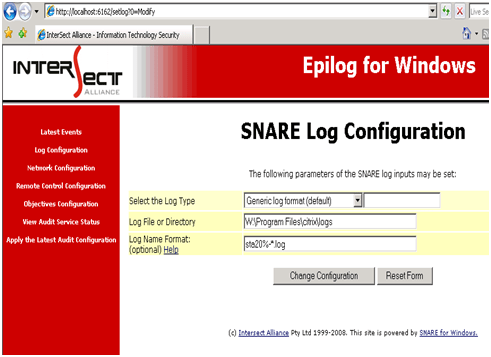 The next step involves integrating them with a free open source product called “Epilog” by this totally kick ass company called intersect alliance (www.intersectalliance.com). We will configure epilog to send these flat files to a KIWI syslog server.