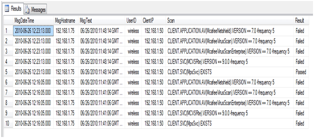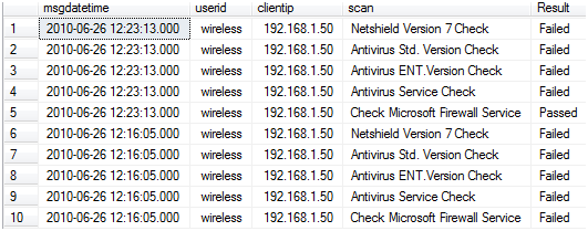 As you can see from the scans above, a Level I engineer may not have a very easy time with this so we are going to change our SQL up a little bit so that we have a more friendly description of the scan so that when someone calls the helpdesk saying they cannot get to a resource due to a failed scan, the person on the phone with them can give them a clear explanation of what the issue is.